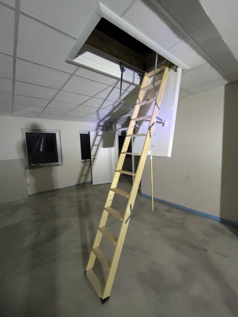 Rasterdecke mit Zugang nach oben – Einschubtreppe clever integriert